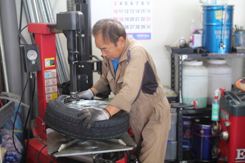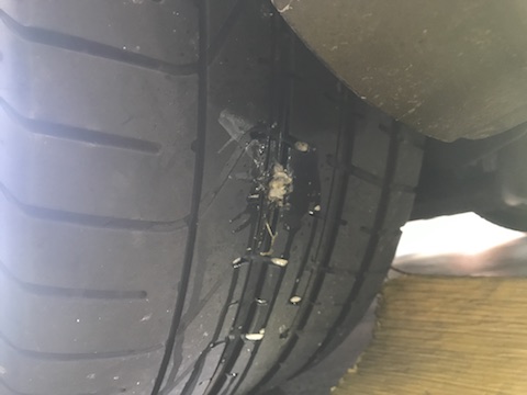 穴が空いた場所がタイヤの真ん中だったので、お客様と相談し、パンク修理で対応しました。