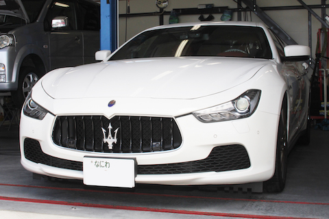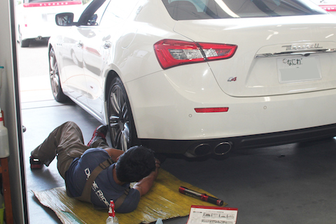 タイヤ1本だけ空気が減っているとの事で、マセラティ緊急入庫!安全に関わる大事な場所。