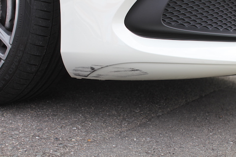 ベンツのフロントバンパー、見えなかった小さな縁石でガリガリ!