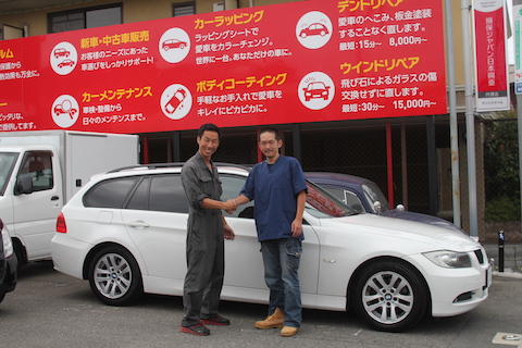 と、握手してもらい、ホントに嬉しいです!フロントガラス交換となってしまったお客様、お得なガラスで喜んで頂けました!!