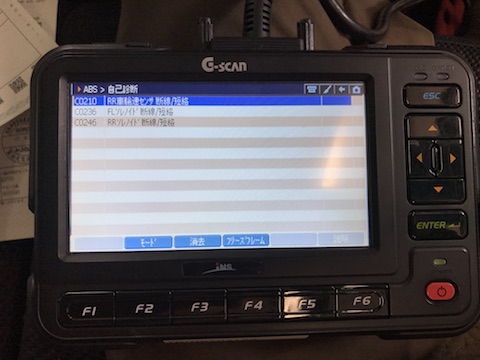 ブレーキを踏んだ時にロックさせないABSが動かない状態なので、警告灯が点いていました。