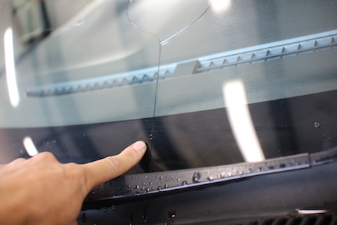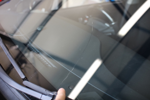 フロントガラス一番上あたりに飛び石が当たり、傷がいっきに伸びたそうです。残念ながら、ウインドリペアはできません。