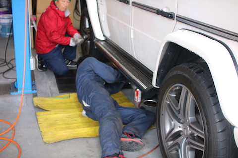 ドアのガラス交換も、ほとんどの車屋さんでは、ガラス専門業者様を呼んで交換しているんです。