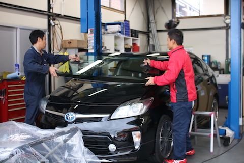 奈良県磯城郡よりプリウスのフロントガラス交換でご入庫。