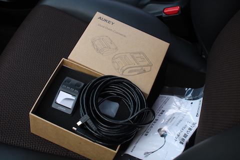 今回のドライブレコーダーは、AUKEY(オーキー)製で前後録画できるタイプ。