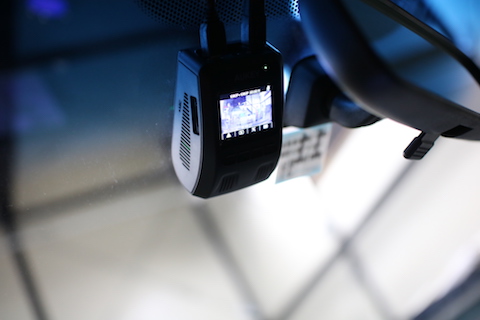 ドライブレコーダーは、お客様の視界の邪魔にならない、バックミラー後ろで助手席側に設置。