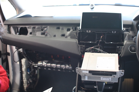 車内の通信信号などの配線を改良・接続して、テレビキットを取付します。パネル外す時に割れたり、配線ミスで故障など、DIYではレベルが高い作業ですね!