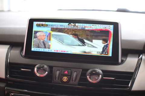 現行のBMWのモニターに地デジのテレビを視聴出来るオプションがあるのですが、なんと約20万円もし、画面上の白の四角くらいの小さい表示!!