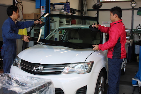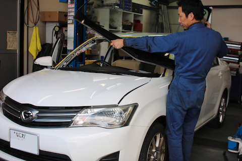 大阪府大阪市より、7年前のデントリペアでお付き合いが始まったリピーター様、カローラ アクシオのフロントガラス交換も、デントスマイルにご依頼いただきました!