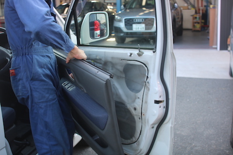 診断した結果、スイッチが壊れて、窓ガラスが開けれない状態。
