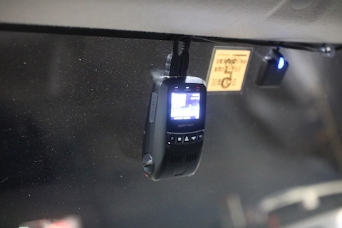 お客様がご購入したドライブレコーダー、モニター付きのカメラをフロントガラスに、