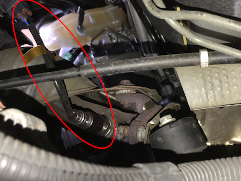 マフラーについている、エンジン燃焼状態をチェックするセンサーを、