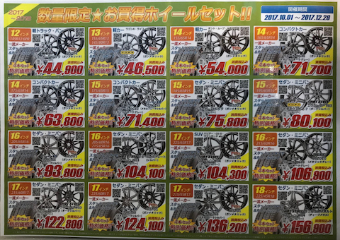 デントスマイルでは、お安いホイールとスタッドレスタイヤセットをご用意しました!