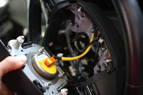 エアバック搭載のハンドルですので、気をつけて作業しないといけません。
