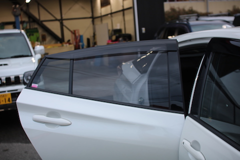 カーフィルム貼る前は、プライバシーガラスで少しスモークはいっていますが、透けて見える状態。