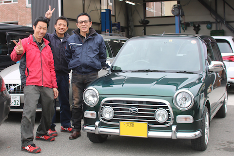 大阪府枚方市よりダイハツ ミラジーノのお客様、ヘコミ修理でご来店。ご期待にお応え出来る修理が出来ました!