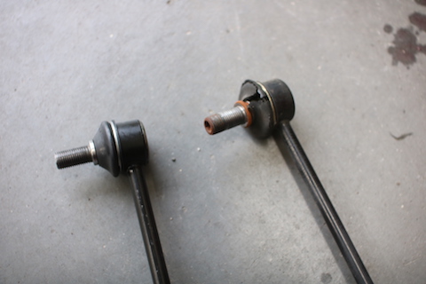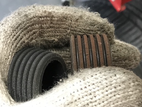 右の部品は破れていたので、左の部品と交換。ゴムは経年劣化で硬化して破れます。雨で錆びて、大事な関節が折れると、車の操作が効かなくなります!