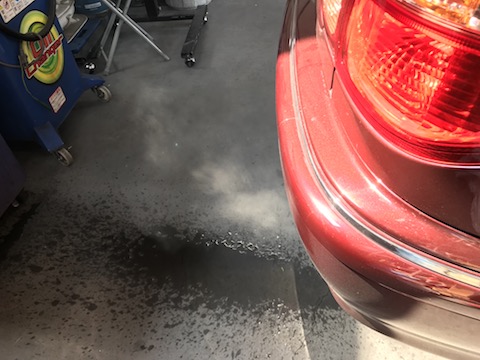 液体をエンジン内で燃やしていくと、白い煙がモコモコとマフラーから出てきます。これが燃えたカーボンが排出されている証拠。