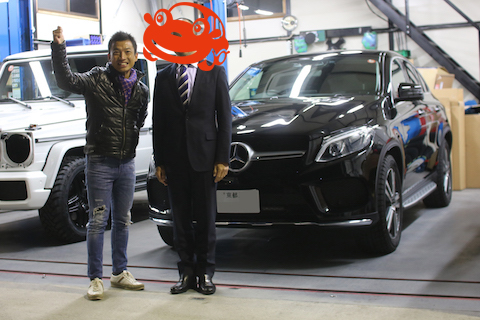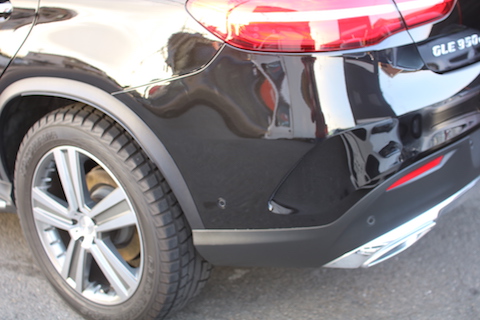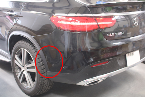 ベンツ GLE350dのお客様、リアバンパーの傷修理でご来店。