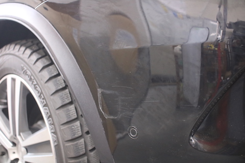 リアバンパーにこすった傷。他店様では、バンパー交換か、バンパー全部塗装。