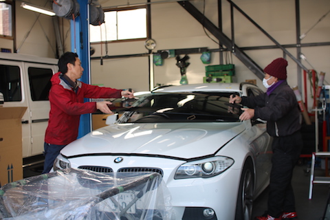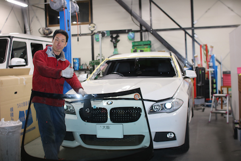 大阪府枚方市よりBMW 5シリーズのお客様、フロントガラスに飛び石被害!