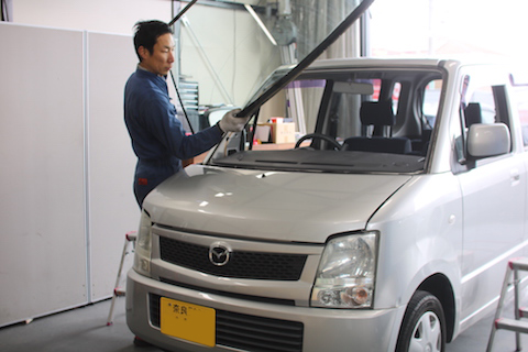 運転席前に飛び石が当たり、傷が伸びてしまい、残念ながらフロントガラス交換となりました。