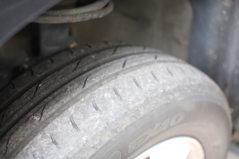 リアタイヤはら内側のスリップサインが出てる危険な状態。