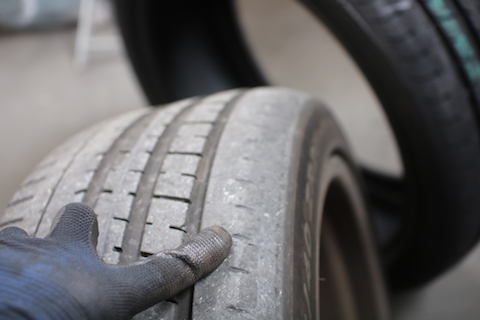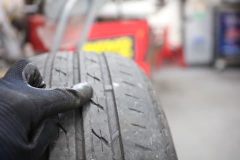 ミニバンは背が高いので、車が大きく傾く分、タイヤの角が減りやすいんです。この角に溝がないという事は、カーブで踏ん張りが効きません。