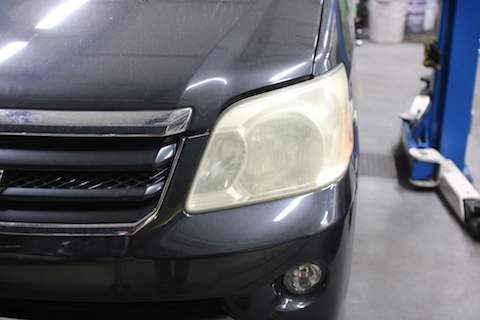 原因は、ヘッドライトレンズが経年劣化により、黄色く変色。