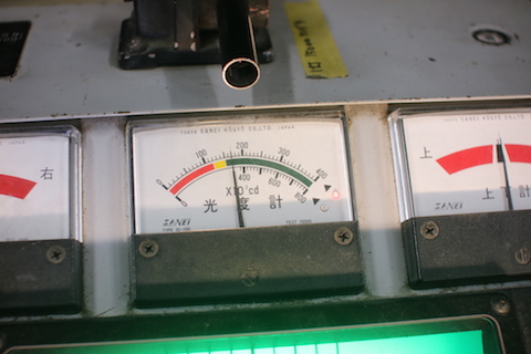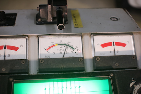真ん中のゲージが明るさを表すのですが、車検に合格しない黄色ギリギリ!
