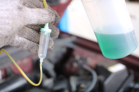 点滴な容器を使って、エンジンをアイドリング状態で少しづつ入れます。