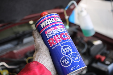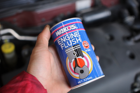 これで燃焼室が綺麗に洗浄できたので、今度はWAKOS エンジンフラッシングでエンジンオイルを洗浄。