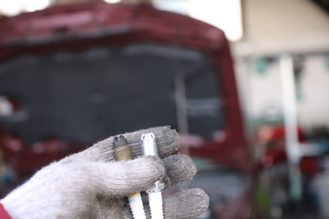 右の新品プラグと比べ、左は真っ黒になっています。エンジンが温まらない状態は不観戦燃焼で黒いカーボンが発生します。