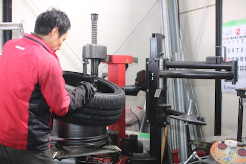 22インチまでタイヤ交換が可能な設備で、大事なホイールを傷つけずに施工。