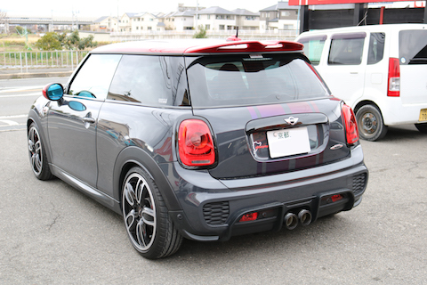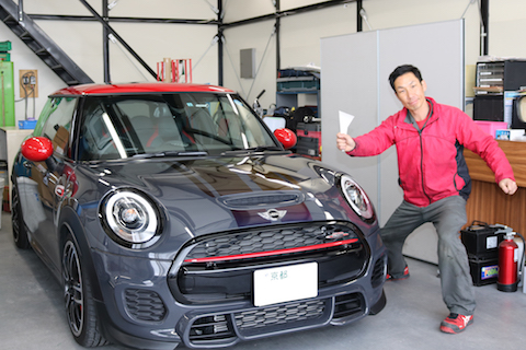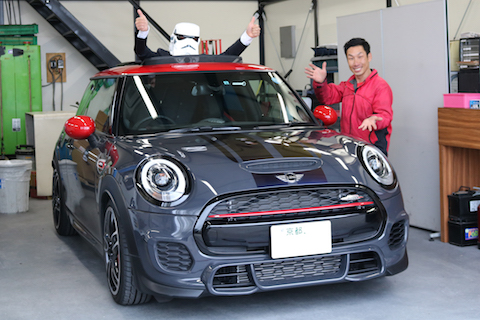 京都府城陽市より、BMWミニJohn cooper worksに乗っているスターウォーズのストームトルーパー様がご来店(笑)