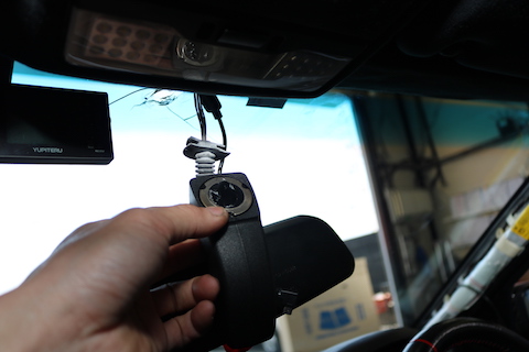 運転中に、ルームミラーに頭が当たってルームミラーの根元からめくれて割れています。