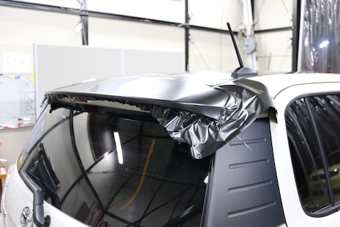 リアスポイラーの湾曲した部分も綺麗に貼り付けできます。