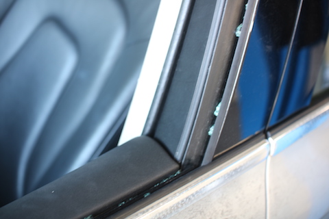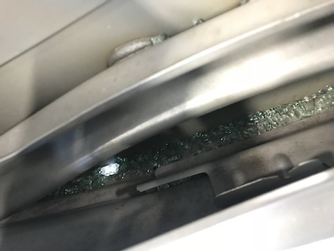 ドア内側にたまっていたガラスの破片も、