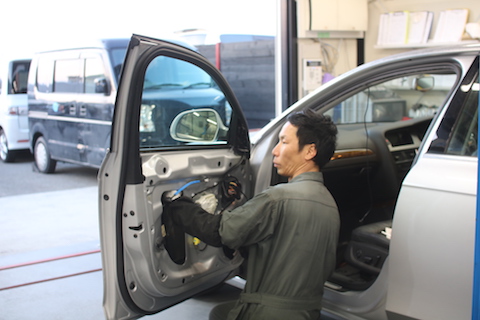 兵庫県西宮市よりアウディA4のお客様、車上荒らし被害でご来店。