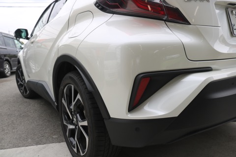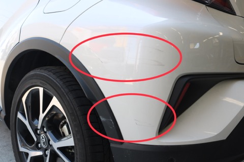 買ったばかりのC-HRリアバンパーにキズ。最小限の費用で、最大限綺麗になり、お客様はニッコリスマイル!