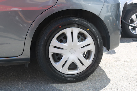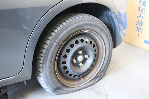 タイヤがバーストしたと、フィットのお客様が緊急入庫。
