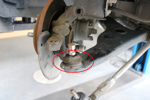 ロアアームブーツという、タイヤをかじ取りの軸部分も同じようにヒビ。