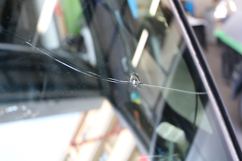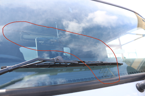 フロントガラスに飛び石があたり、傷が伸びてしまい、