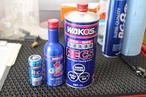 ワコーズというエンジンを掃除するRECS、燃料系を清掃するフューエルワン、そしてエアコンの効きをよくするパワーエアコンプラス!