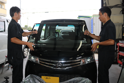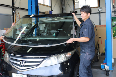 ガラス屋さんは連絡つかないし、車検は今月中で交換しないと合格しない状況で困っていたそうですが、