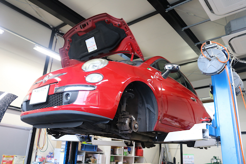 フィアット500のお客様、ブレーキ整備でご来店。