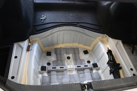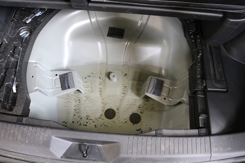 スペアタイヤ収納部分に雨水が溜まっていました!このまま放置すると、カビやサビの原因になります。