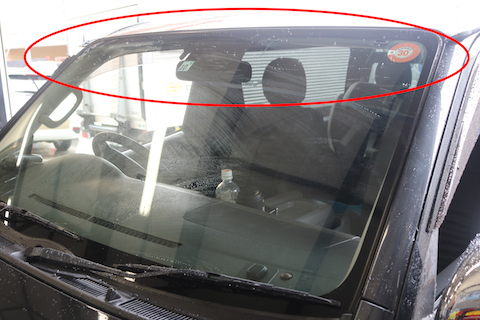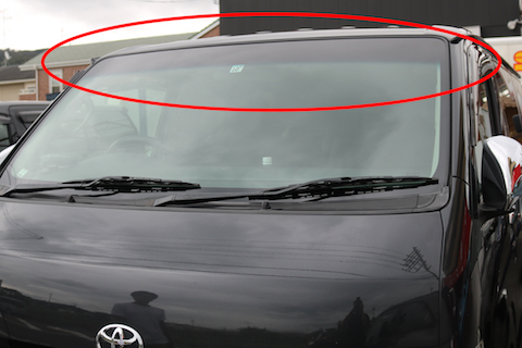 フロントガラスに瓦が落ちて、ヒビが伸びています。こうなると残念ながら交換となってしまいます。