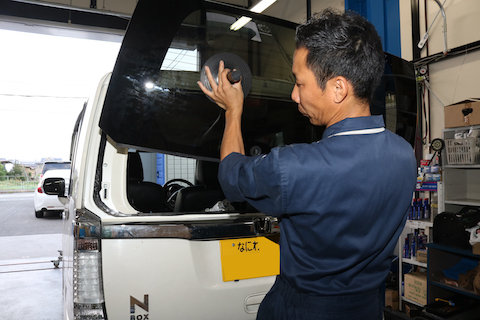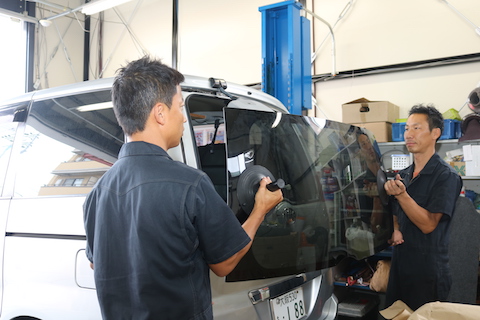 台風被害でリアガラス破損。品薄ガラスも優良品で交換可能!
