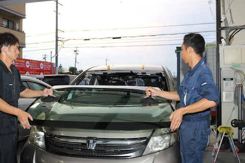 車のガラス交換は、ガラス取り替え専門業者様に依頼するのですが、デントスマイルは、自社施工でガラス交換するので、中間マージンが無いので費用を抑えれます。